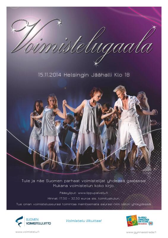 Joukkuevoimistelun Freyat- joukkueet ovat mukana esiintymässä gaalassa. Tue seuran toimintaa mainitsemalla lipun ostossa Hyvinkään voimistelu ja liikunta. VOIMISTELUGAALA 15.11.2014 klo 18.00Suomen Voimisteluliiton syksy 2014 huipentuu 15.11. pidettävään gaalanäytökseen Helsingin jäähallissa. Tämä Voimistelugaala on samalla Gymnaestradan Suomi-illan kenraaliharjoitus. Jäähallin estradilla nähdään illan aikana eri-ikäisiä ja eri lajien huippuvoimistelijoita, tanssin taitajia ja tanssillisen voimistelun hurmaa. Hyvinkään, Järvenpään ja Mäntsälän Freyat ovat myös mukana gaalassa esiintymässä lähes 50 voimistelijan ohjelmalla. Voimistelugaala toteutetaan kolmen teeman ympärille: yllätyksellisyys, kierrätys ja korkeatasoisuus. Gaalan kesto on noin 90 minuuttia. Olethan mukana vuoden 2014 huippuhetkessä!