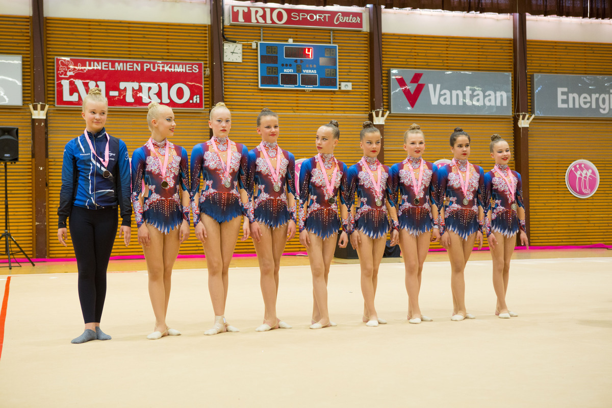 12 – 14 –vuotiaiden SM-sarjan sekä kilpasarjan kilpailun tuloksia sen sijaan jännitettiin Tampereella 21. – 22.5. Takana on näistäkin kilpailuista upea viikonloppu. Kotiintuomisina kaulassa kiiltävät pronssimitalit 12 – 14 -vuotiaiden kilpasarjasta Freyat Aspirelle. ”Aspire on menestynyt läpi kauden hienosti ja mestaruuskilpailuiden mitalisija päätti ansiokkaan kauden hienosti”, toteaa joukkueeen valmentaja Korjus. Freyat jr edusti HJM-tiimiä kovatasoisessa 12 – 14 -vuotiaiden SM-sarjassa saavuttaen hienosti finaalipaikan. Samassa sarjassa mukana ensimmäistä kertaa myös Freyat Future. ”Kumpikin joukkue on kehittynyt kauden aikana hyvin, mutta kilpailusuorituksiin mahtui tällä kertaa harmittavia virheitä, mille ei näin kovatasoisessa sarjassa ole lainkaan sijaa. Joukkueissa on kuitenkin paljon potentiaalia, joten jatkamme sinnikästä harjoittelua!”, jatkoi joukkueita Korjuksen kanssa valmentava Janita Honkavaara. ”Yhteistyössä on voimaa ja olemme ylpeitä HJM-tiimistä, missä mukana ovat Hyvinkään voimistelu ja liikunta hyvoli ry, Järvenpään Voimistelijat ry (JäV) ja Mäntsälän Voimistelijat”, summaa päätteeksi Salla Mäkelä, HJM-tiimin puheenjohtaja. |