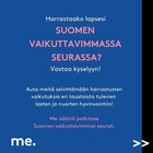 Osallistumme urheiluseuratoiminnan tavoittavuutta ja hyvinvointivaikutuksia kartoittavaan selvitykseen maaliskuussa. Toteutamme selvityksen yhteistyössä lasten ja nuorten eriarvoistumista ehkäisevän Me-säätiön ja lajiliiton kanssa. Selvitykseen osallistuvat seurat osallistuvat myös Suomen vaikuttavin seura -kilpailuun, jossa on mahdollista voittaa Me-säätiön myöntämä rahapalkinto. Selvityksen toteuttamista varten luovutamme Me-säätiölle tietoja seuran jäsenistä (kuten sähköpostiosoitteen ja postinumeron). Tietoja hyödynnetään vain kyselyn toteutusta ja analyysiä varten. Tätä varten olemme päivittäneet tietosuojaselosteemme. Tutustu siihen tästä Seura Teillä on oikeus vastustaa tietojen luovutusta. Otathan yhteyttä, mikäli sinulla on kysymyksiä aiheeseen liittyen. Me-säätiö kerää kyselyn avulla teiltä tietoa siitä, miten toimintamme tavoittaa eri taustoista tulevia lapsia ja nuoria ja lisääkö toiminta heidän hyvinvointiaan. Kyselyyn vastaaminen on täysin vapaaehtoista. Vastaukset ja osallistumistiedot ovat luottamuksellisia eikä Me-säätiö luovuta niitä muille tahoille. Selvityksen lopputulokset ovat tilastotietoa, josta ei voida tunnistaa yksittäisiä henkilöitä. Me-säätiö ei luovuta yksittäisten henkilöiden kyselyihin antamia vastauksia seuralle. |