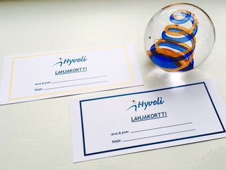 Lahjakortti kelpaa maksuvälineenä Hyvolin kausimaksuihin sekä aikuisliikunnan kertakortteihin. Kortti on voimassa kaksi (2) vuotta ostopäivästä.